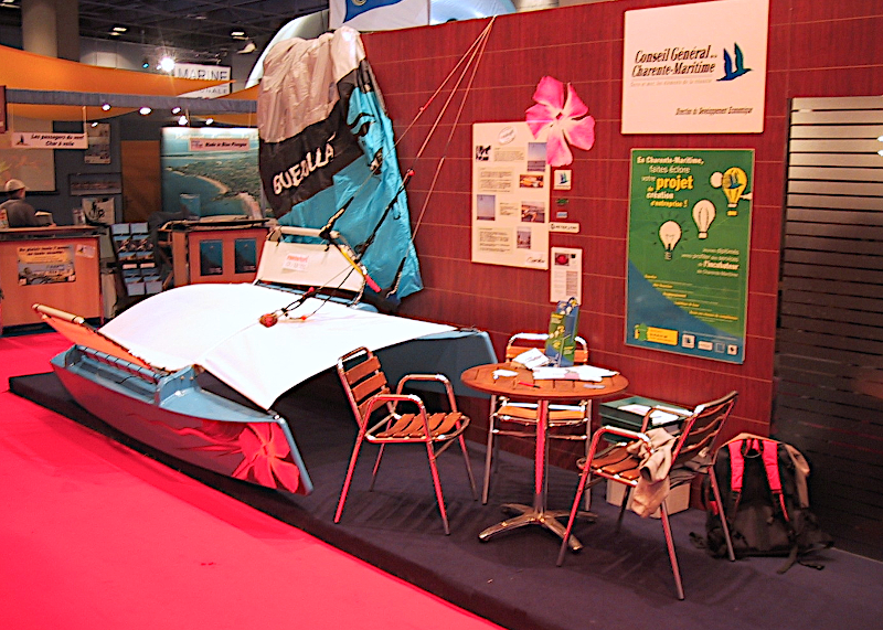 Grâce à l'aide du Conseil Général de Charente Maritime, j'ai ensuite pu exposer analogik au salon nautique de Paris de décembre 2004. Il avait fallu speeder pour être prêt et la peinture avait séché sur place.