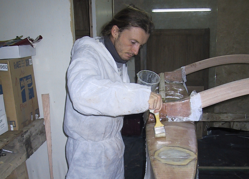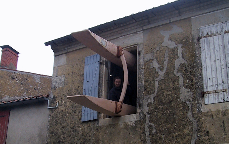 Avec l'aide de mon ami François Trouillet, j'ai construit le prototype en CP-Epoxy. Coup de bol, il passait juste par la fenêtre de l'atelier...